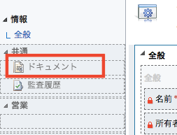 デフォルトではオンになっているので設定の必要はありませんが、フォームでも「ドキュメント」がナビゲーションに追加されていることを確認します。