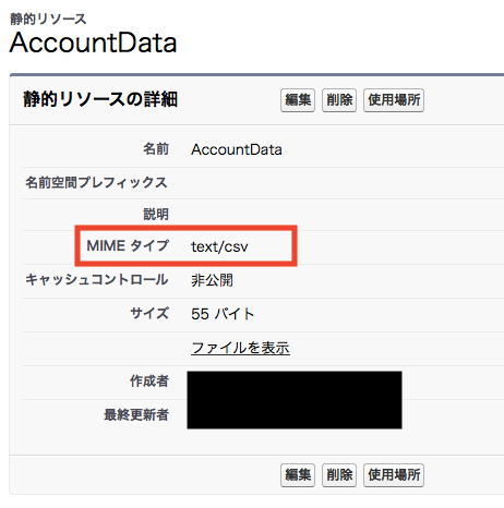 ここで、MIMEタイプがtext/csvとなっていることを確認しましょう。